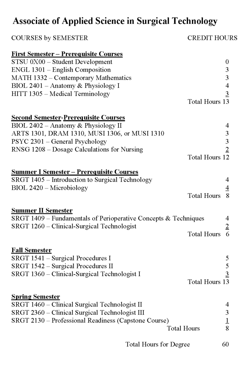 See prerequisites for the Surgical Technology Program HERE.